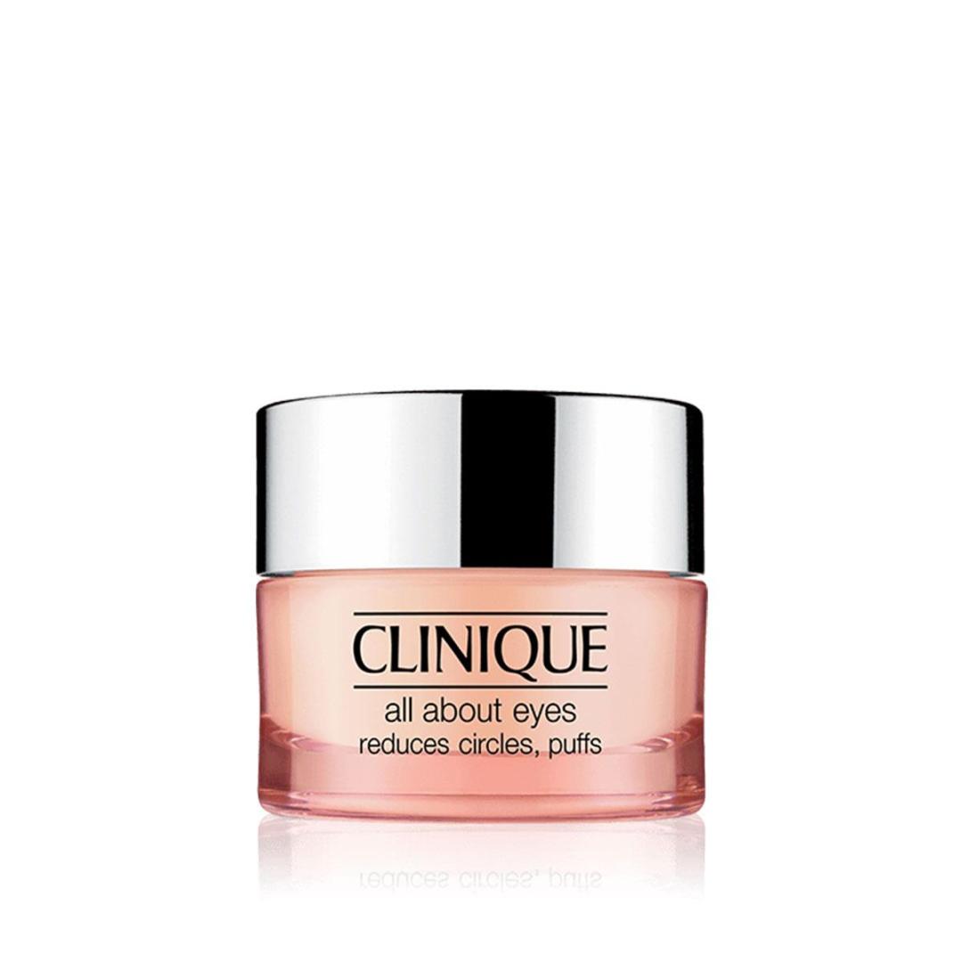 کرم دور چشم کلینیک مدل آل ابوت آیز (clinique all about eyes) حاوی عصاره چای سبز و کافیین و دیگر ترکیبات انتی اکسیدان و بسیار مفیدی است که به تجربه استفاده کنندگان آن تاثیر فوق العاده به سزایی روی پف تیرگی و خطوط دارد.