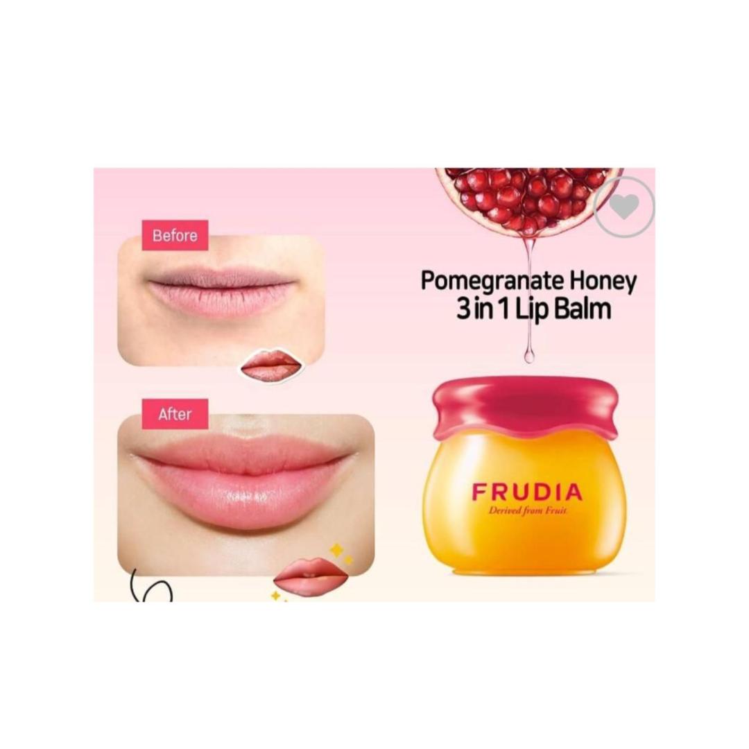 • مدل انار: این مدل دارای رایحه و عصاره‌ی انار است که پوست لب را شاداب می‌کند. عصاره‌ی انار حاوی آنتی‌اکسیدان‌ها و ویتامین C است که به ترمیم بافت پوست لب کمک می‌کند. همچنین این مدل حاوی 5 درصد والوفیلین (Volufiline) است که این ماده خاصیت حجم‌دهندگی دارد. این مدل از بالم لب فرودیا رنگ طبیعی زیبایی به لب می‌دهد.