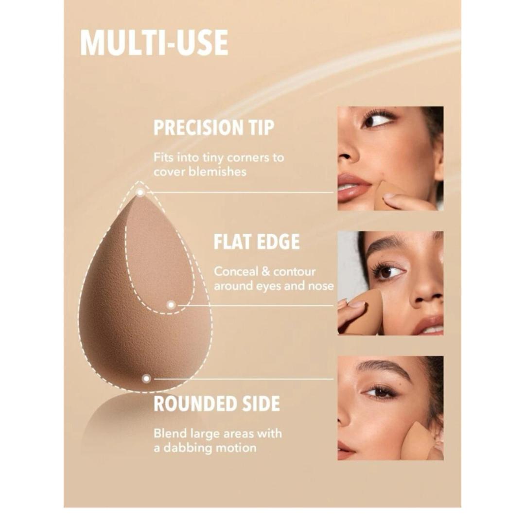 از قسمت تخت اسفنج اولتیمت شیگلم، برای کانسیل کردن و کانتور کردن اطراف چشم و بینی، و از نوک اسفنج برای آرایش زوایای کوچک که دسترسی سختی دارند استفاده کنید. از قسمت گرد اسفنج نیز برای قسمتهای بزرگ صورت استفاده کنید.